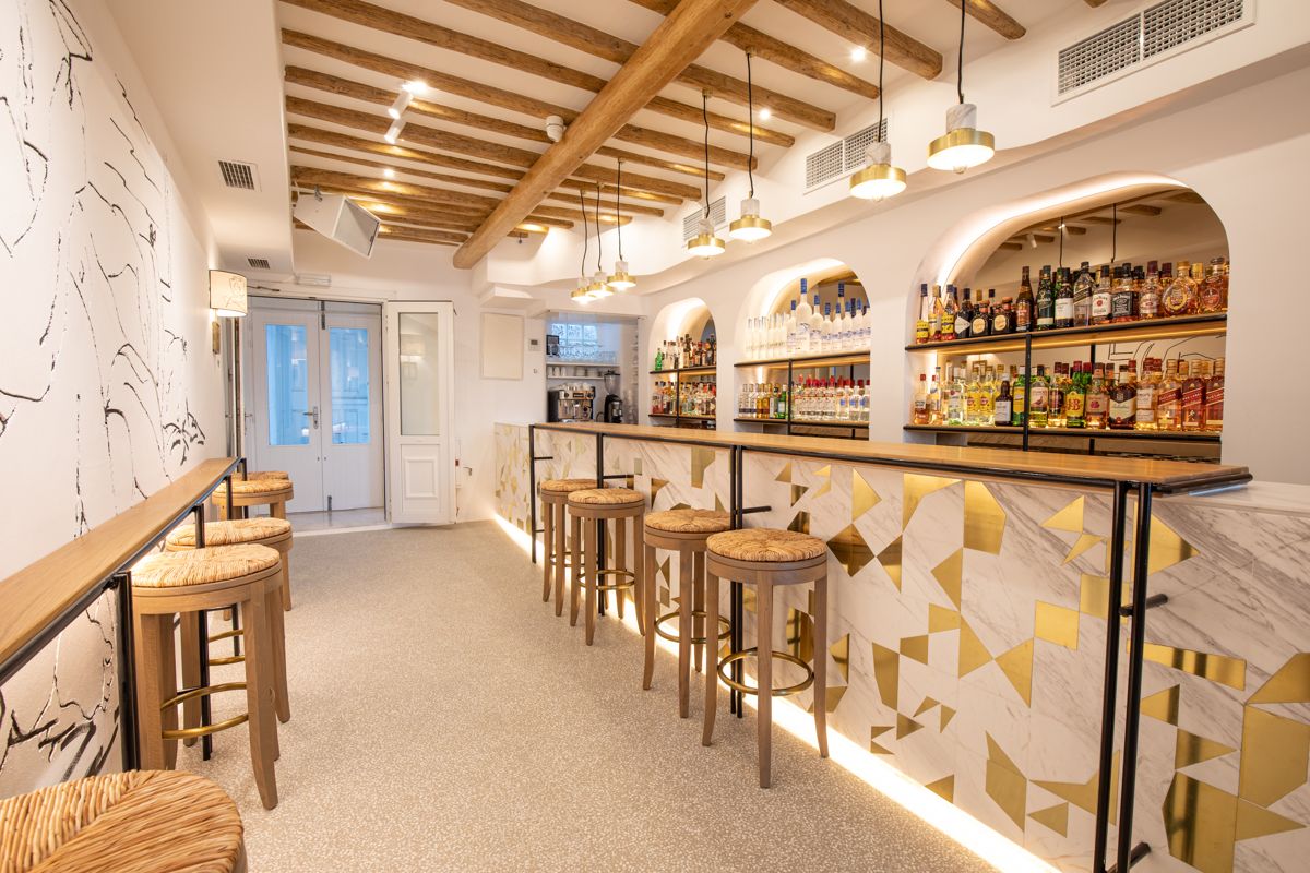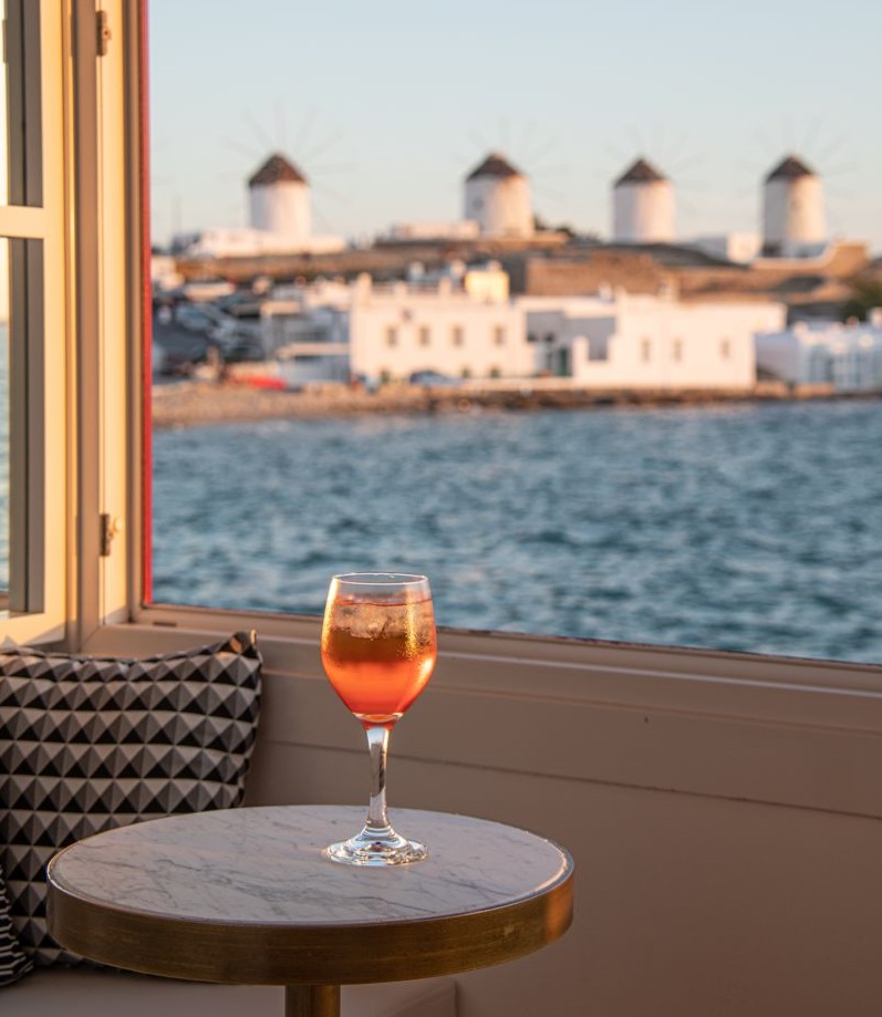 Housed in a typical building of Little Venice, Rhapsody has a small charming balcony overhanging the sea and this is the perfect spot to enjoy a cocktail while watching the waters of the Aegean lapping on the shores of Little Venice.