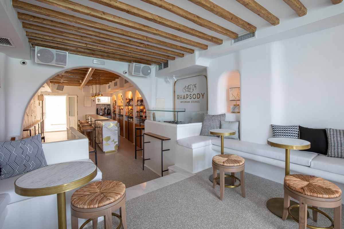 Rhapsody is a coffee - bar located in Little Venice, the most famous nightlife destination in Mykonos. With an informal decoration and a relaxing ambiance, Rhapsody has the feel of a friendly neighborhood bar and it is a popular hang out for young people. Most people wander in after a long day at the beach and relax over a few drinks at the long bar.