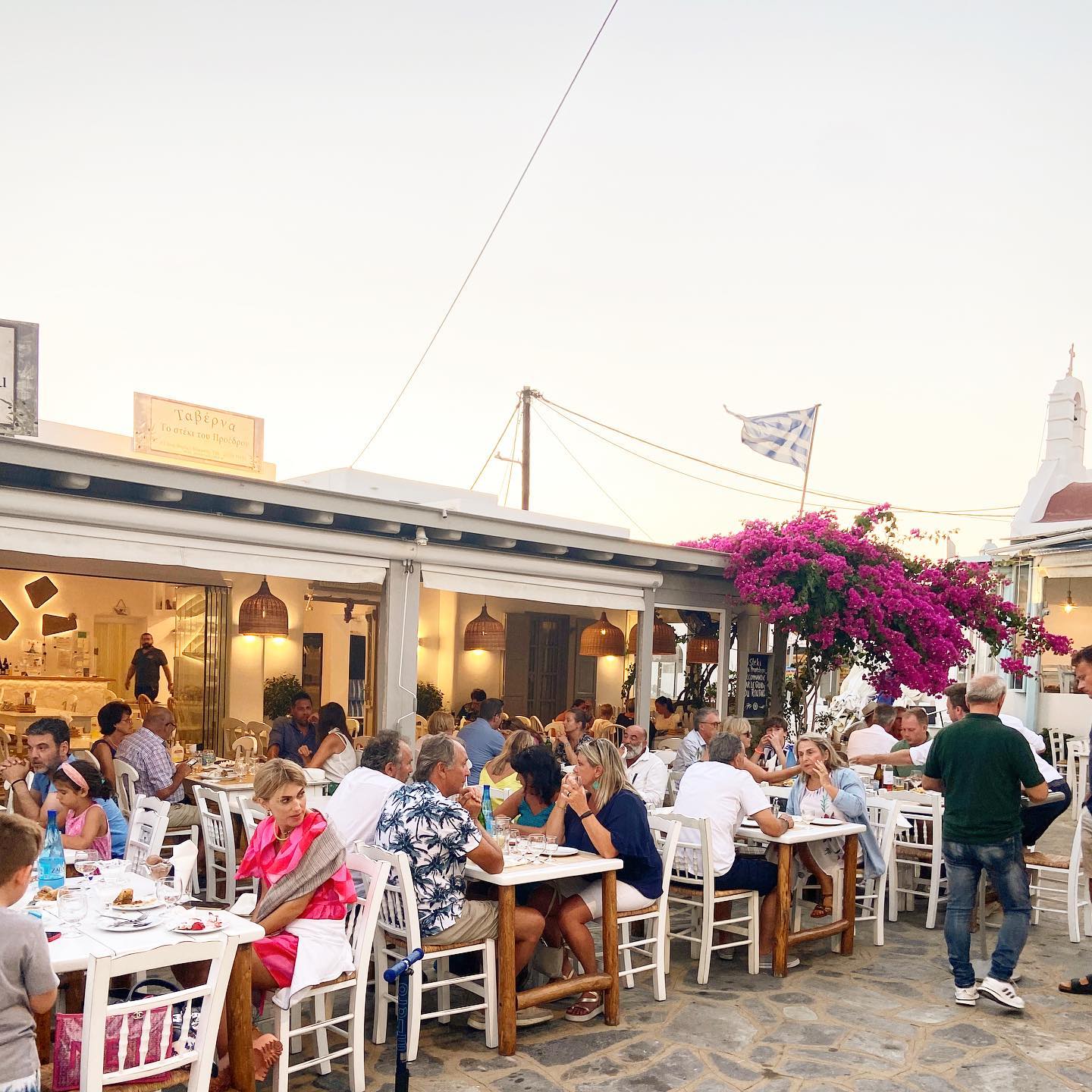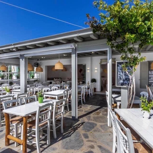 Η νησιώτικη αύρα είναι διάχυτη στο χώρο, ενώ η ολάνθιστη αυλή του με χάζι στην κεντρική πλατεία του «χωριού» προσφέρει ένα χαλαρό και δροσερό «καταφύγιο» για να γευτείτε σπιτικά μαγειρευτά και λαδερά από ντόπιες πρώτες ύλες, φρέσκες σαλάτες με μυκονιάτικα προιόντα και καλοψημένα κρέατα από τη φάρμα της οικογένειας (φημίζεται για τα παιδάκια του αλλά και για το «μπιφτέκι του Προέδρου»)!