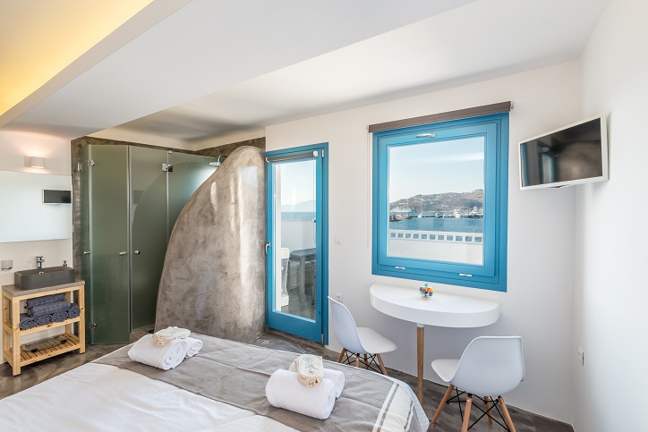 It's a brand new studio, at the center of the old city, CHORA, with an excellent view at the sea.It is located between the restaurants , cafe and the best famous clubs. So you are in the middle of everything and also five minutes walk from the Wind Miles , Little Venice and the famous old church Paraportiani.
