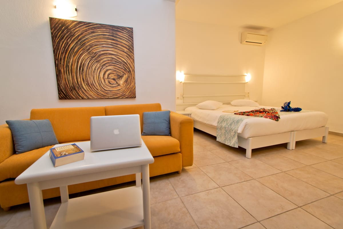 Yiannaki Hotel in Ornos, Mykonos is built according to the traditional Cycladic architectural style and is comprised of 45 tastefully-furnished rooms.