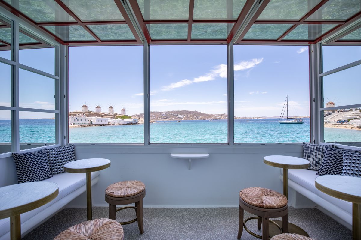Housed in a typical building of Little Venice, Rhapsody has a small charming balcony overhanging the sea and this is the perfect spot to enjoy a cocktail while watching the waters of the Aegean lapping on the shores of Little Venice.