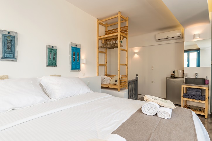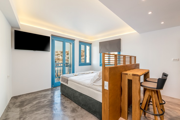 It's a brand new studio, at the center of the old city, CHORA, with an excellent view at the sea.It is located between the restaurants , cafe and the best famous clubs. So you are in the middle of everything and also five minutes walk from the Wind Miles , Little Venice and the famous old church Paraportiani.