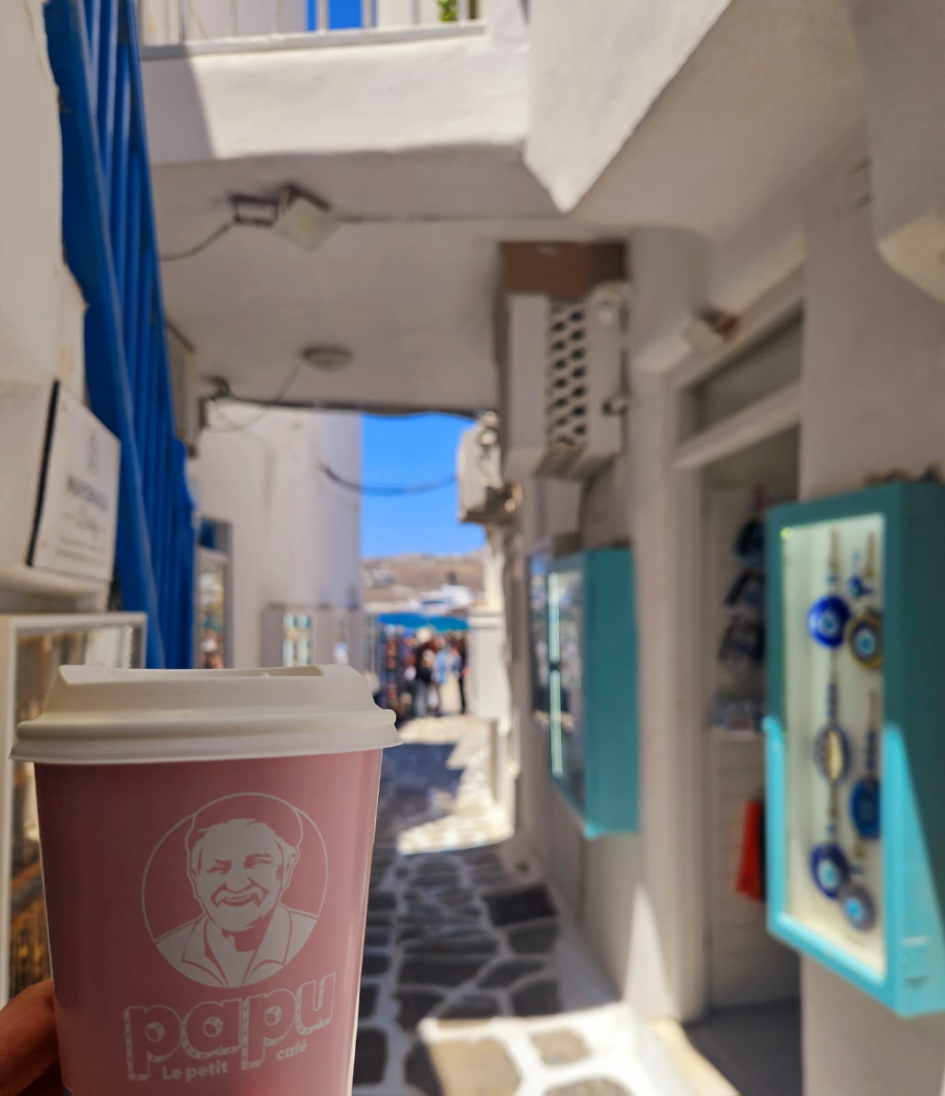 Takeaway Coffee & Snacks at the old harbour of Mykonos Town.